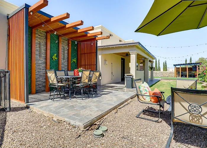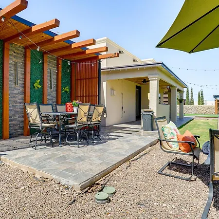 The kitchen amenities at Family-Friendly El Paso Home Hike, Shop And Explore feature a refrigerator, an oven, and kitchenware, provided in an outdoor dining area. Guests can try Mexican cuisine at Blue Mule Outfitters, located only 650 metres away.